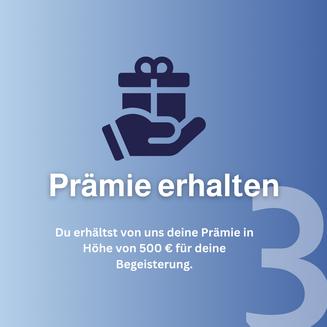 Für jeden empfohlenen Neukunden, belohnen wir Sie mit einer Prämie in Höhe von 500 € !